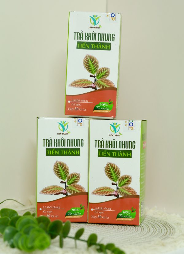 Trà thảo mộc Khôi nhung là 1 loại thảo dược, lá Khôi có chứa các thành phần chính là tanin và glucoside, có tác dụng chống viêm, làm se vết loét, làm liền sẹo và giảm sự gia tăng axit dạ dày.